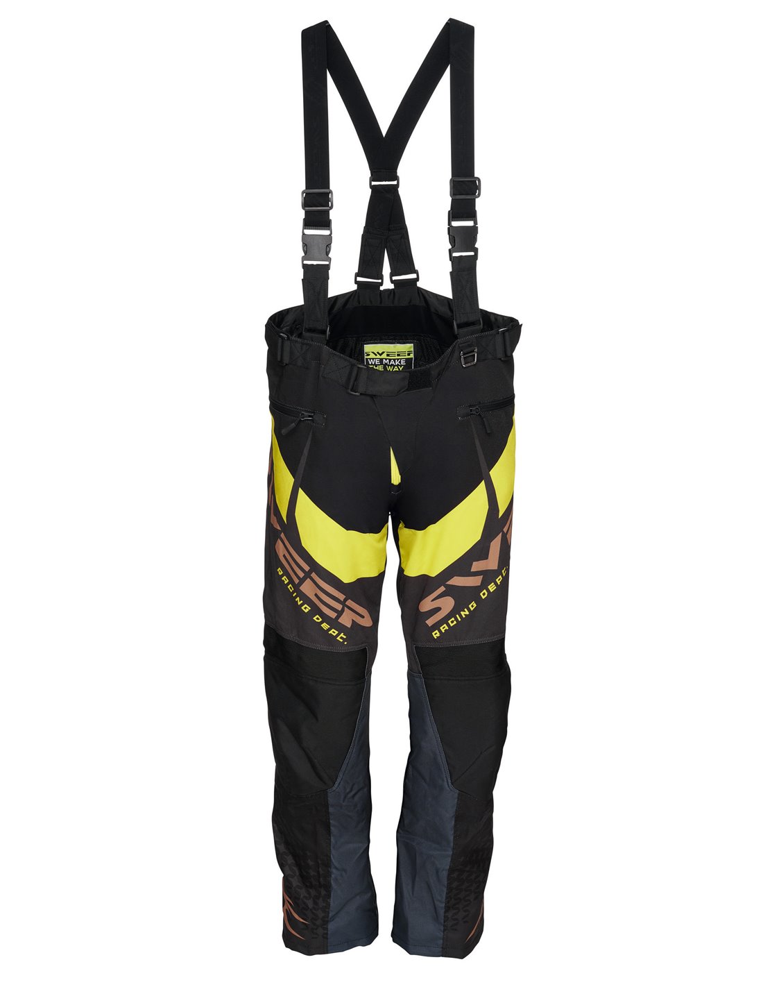 Lätt och bekväm Sweep 4-vägs stretch tyg. - Vattenpelarvärde +10 000 mm H2O. - Andningsvärde +8 488 g/m2/24h. - Andningsbart 3D Mesh innerfoder. - Snölås på tårna. - Justerbara fötter. - Robust metallfäste för dödningsbrytare. - Justerbara och avtagbara hängslen.